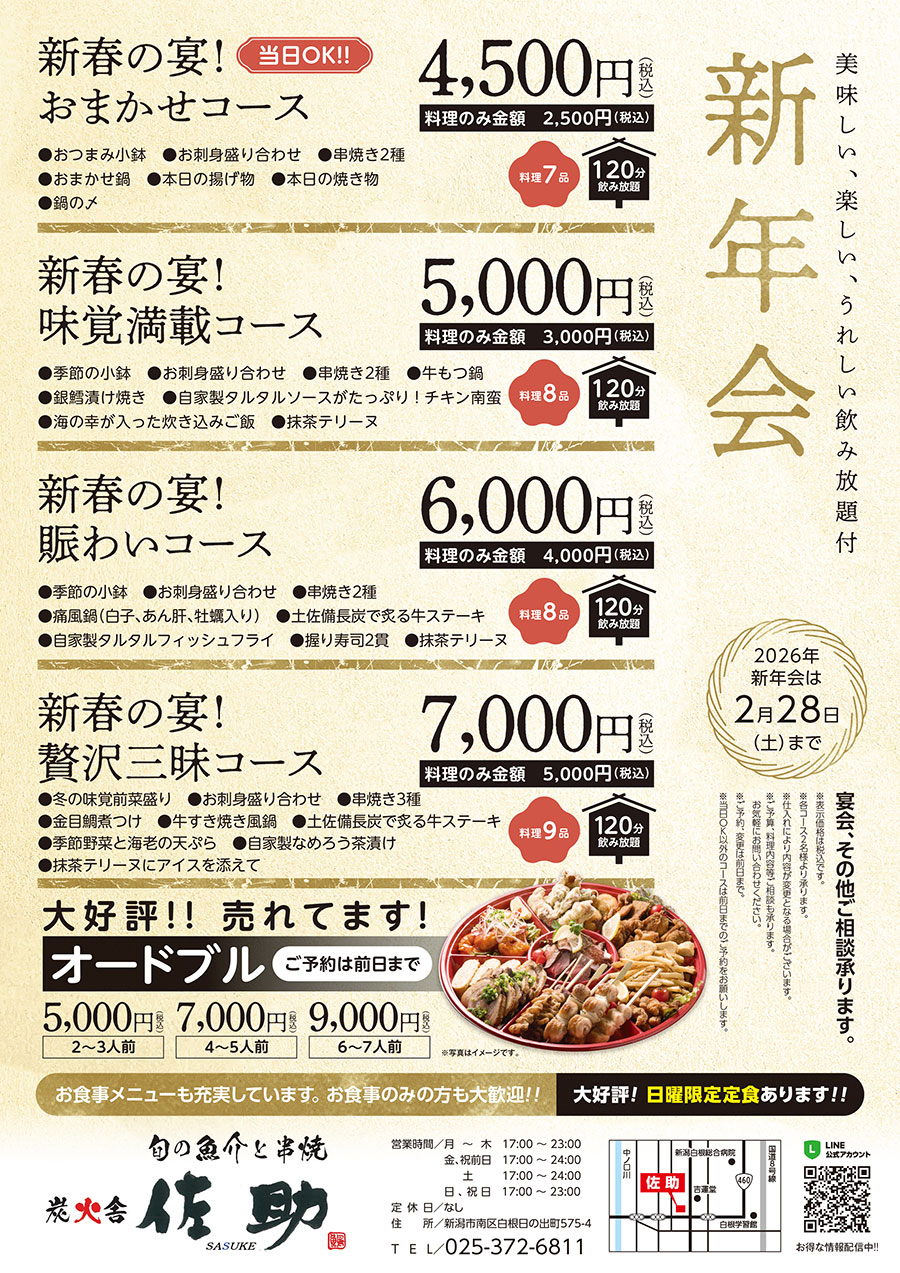 佐助 新年会コース始まりました。