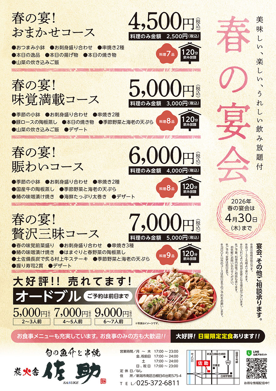 佐助 春の宴会コース始まりました。